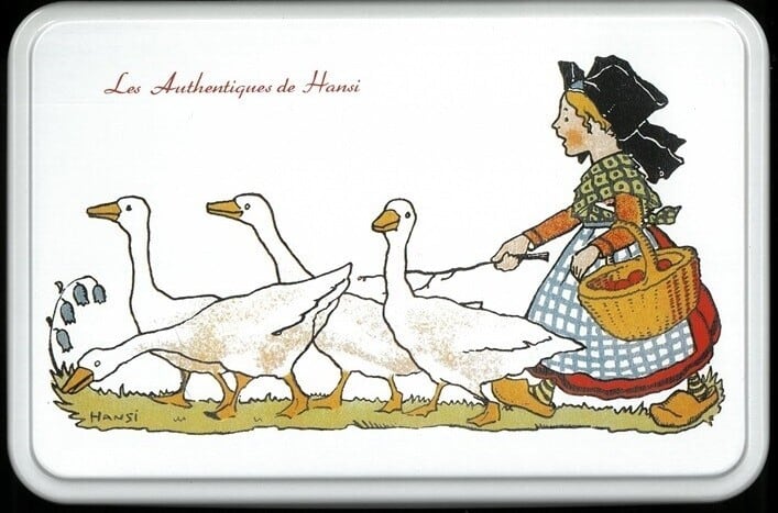 アルザスで有名な画家 Hansiのイラストがプリントされたブリキ缶です