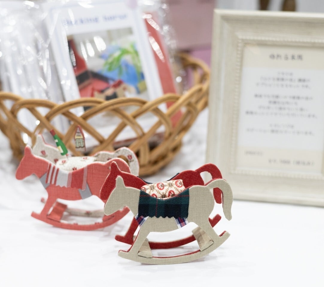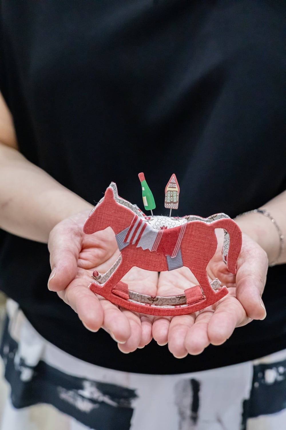 木馬の椅子には綿の入った生地を入れてピンクッションになります。